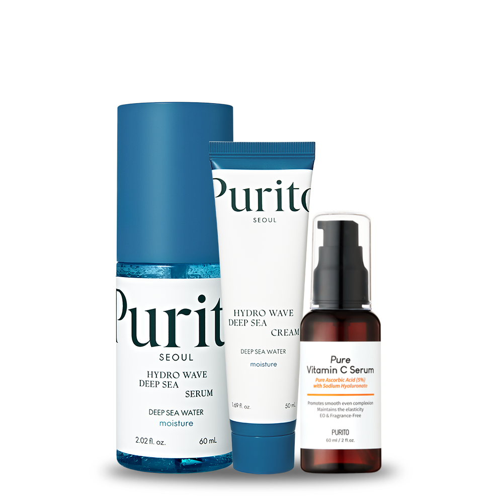 Purito Oily Skin Care Set including Deep Sea Water Cream & Serum in Saudi Arabia Purito Vitamin C Serum from Oily Skin Care Set displayed in KSA packaging Purito cream and serum texture showing lightweight, non-greasy formula in Saudi Arabia Purito Oily Skin Care Set bottles arranged neatly for daily use in KSA Purito Oily Skin Care Set applied on hand showing smooth, hydrating effect in Saudi Arabia